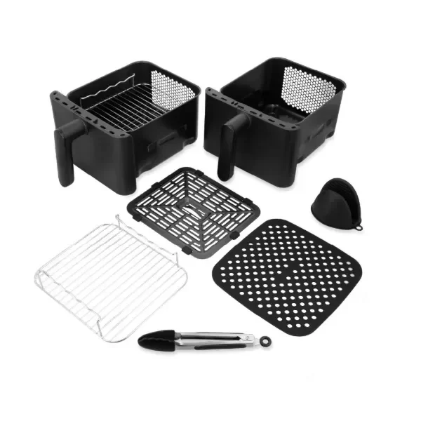 Con una potencia real de 2460W, alcanza rápidamente la temperatura ideal para una cocción pareja, rápida y sin aceite. Su capacidad de 11 litros (5.5 L x2) es ideal para familias grandes o quienes quieren preparar varias comidas a la vez sin mezclar sabores. Gracias a su diseño vertical y apilable, permite cocinar hasta 4 preparaciones en simultáneo, con diferentes temperaturas en cada bandeja. Además, cuenta con un panel digital intuitivo con programas automáticos para cada tipo de alimento, y un rango de temperatura de 60°C a 200°C que permite desde freír hasta deshidratar.